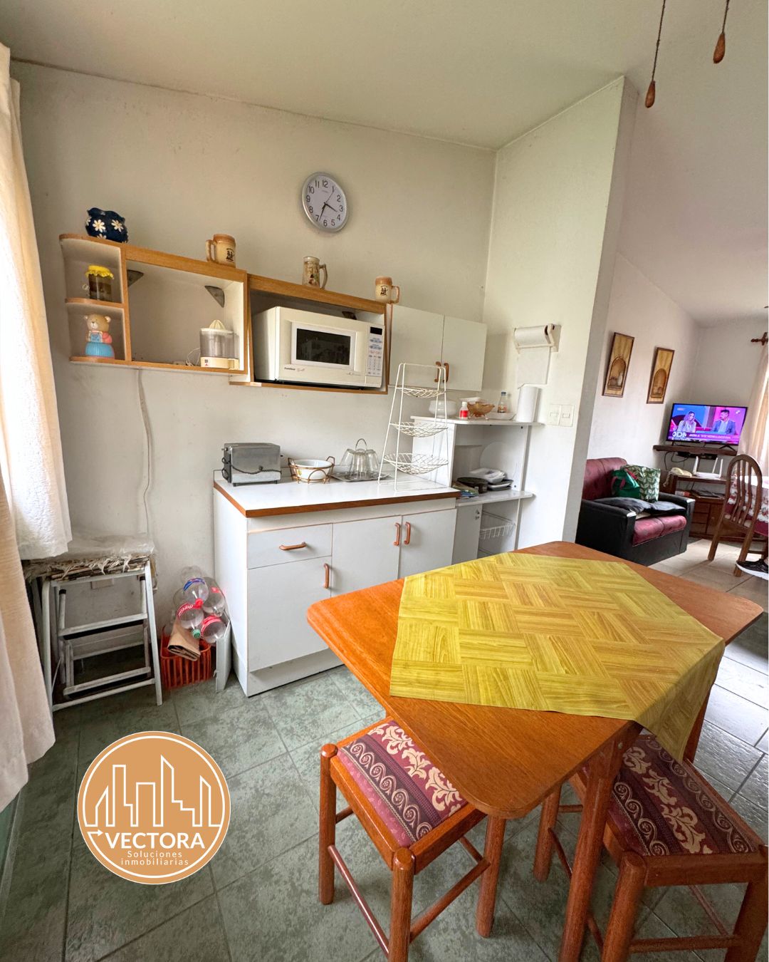 ✅ Cocina definida pero abierta (semi integrada) con muebles aéreos y bajo mesada (con doble mesada) y espacio para comedor