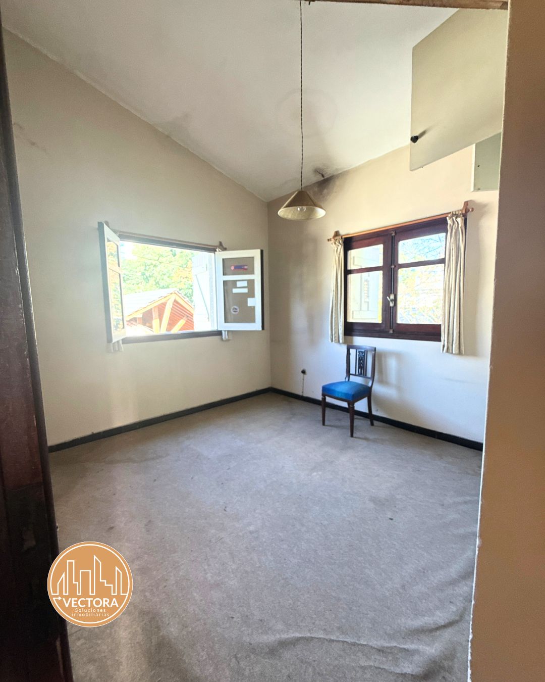 ✅ Gran living comedor con ventanales al frente y estufa a leña (perfecto para recepción o sala de espera)